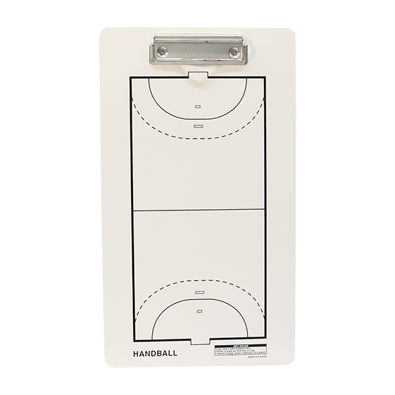 Carpeta con diseño de terreno de juego de fútbol y balonmano. Dispone de clip para hojas. Incluye rotulador que se borra fácilmente. Medidas: 35x20cm.