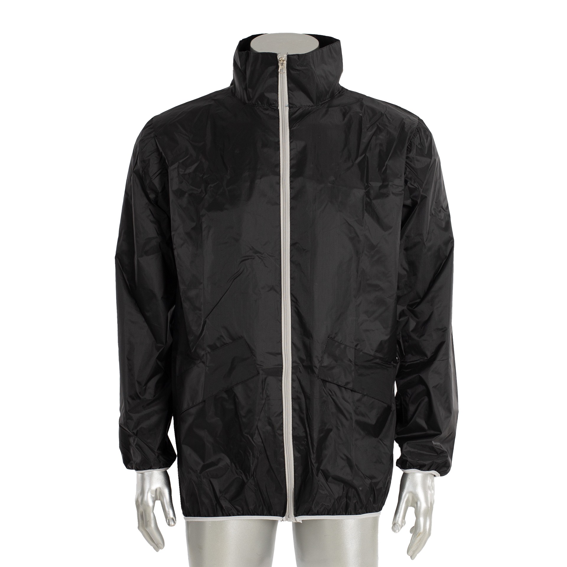 Chubasquero unisex con capucha plegable y ajustable mediante cordones. Puños y bajos elásticos en color a contraste. Bolsillos con solapa inclinada. Interior en acabado plateado. Gramaje: 70 gramos.