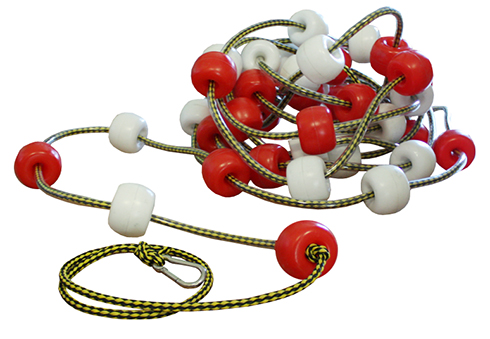 Flotadores indicadores de salida falsa compuestos por cuerda de poliéster, tubo de látex y flotadores. Disponible en diferentes largos en función del tamaño de la piscina. Consultar posibilidad de fabricación en medidas especiales.