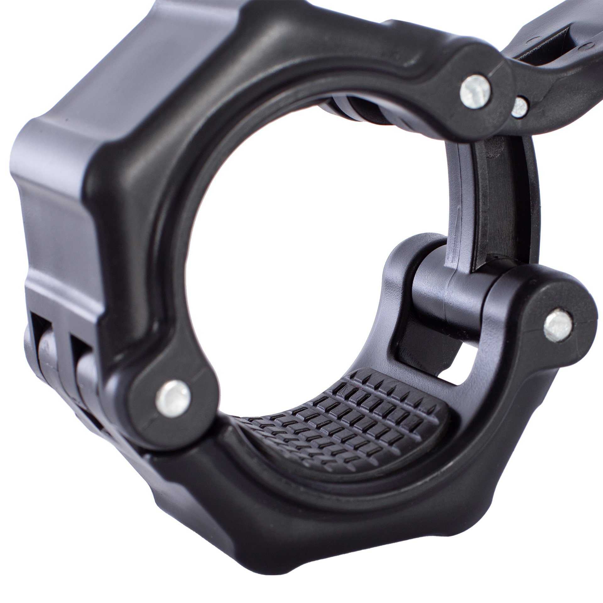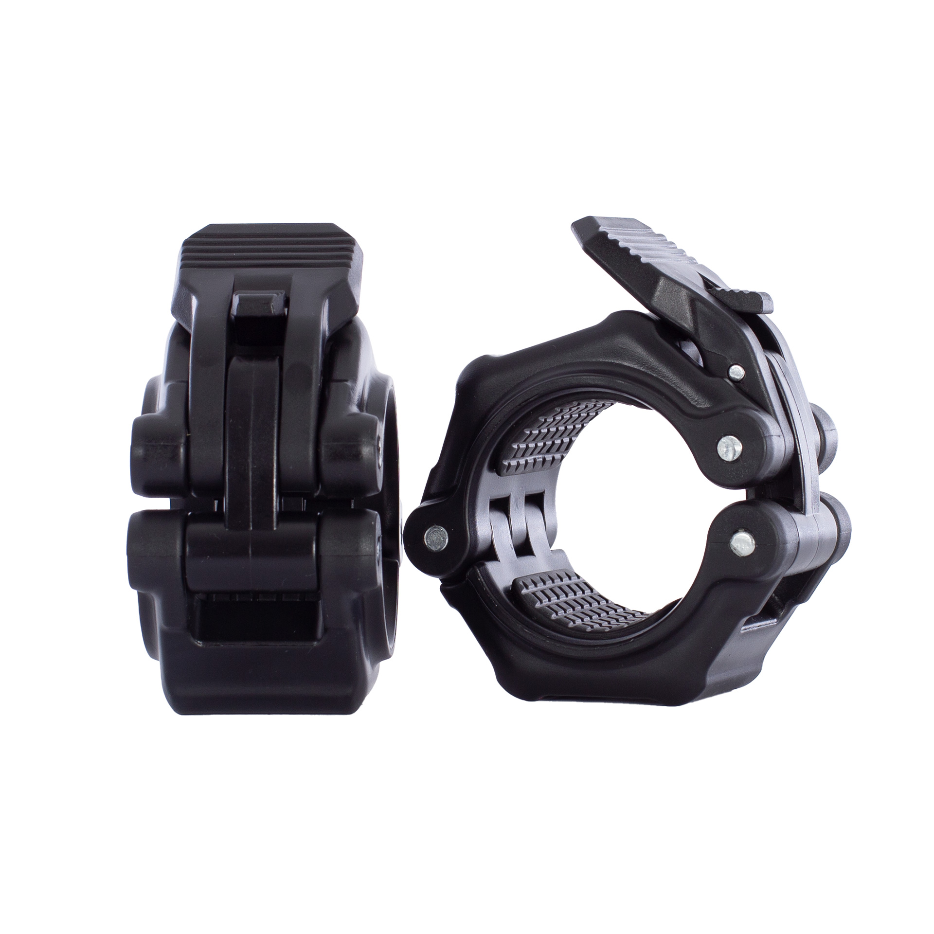 Juego de pinzas/fijaciones para barra olímpica. Permite un cierre rápido y cómodo en el entrenamiento de los discos a la barra.